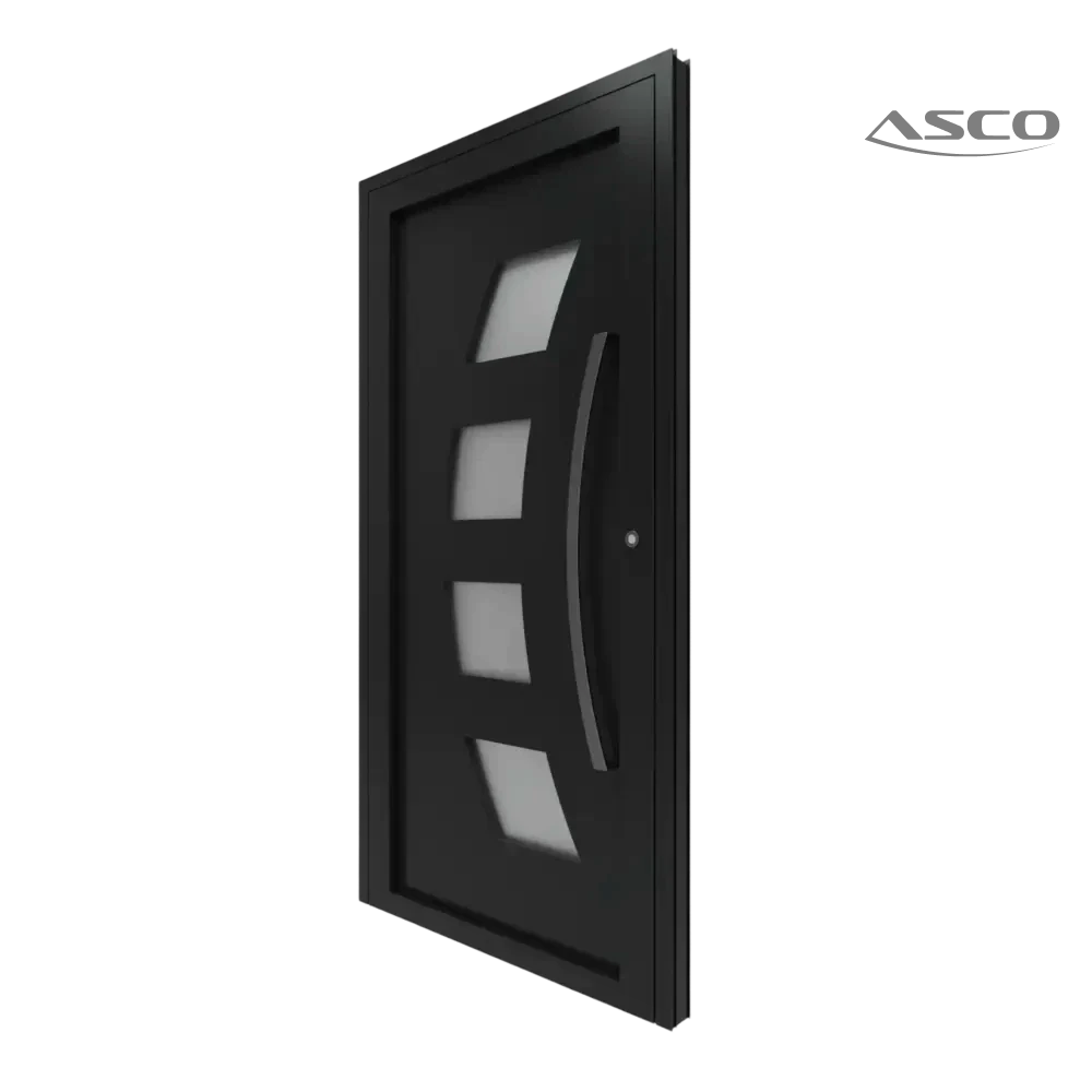 The Aluplast IDEAL 4000 entrance door system, with a 70 mm frame depth, supports glazing and infill panels up to 41 mm thick, ensuring excellent thermal and acoustic insulation. Its robust five-chamber profile provides an effective thermal barrier—preserving indoor warmth and reducing heating and cooling costs. The structure’s design ensures high stability, making it suitable for daily use in residential or commercial entrances.