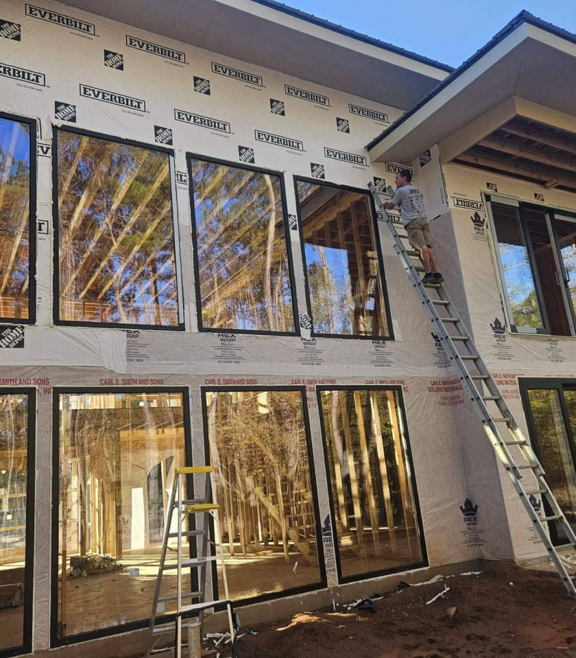 ASCO supplied and installed a modern window package for this new construction contemporary home, featuring expansive picture windows and wide openings to capture natural light and outdoor views. The installation included careful alignment and full perimeter sealing to ensure smooth performance, energy efficiency, and a clean architectural finish.