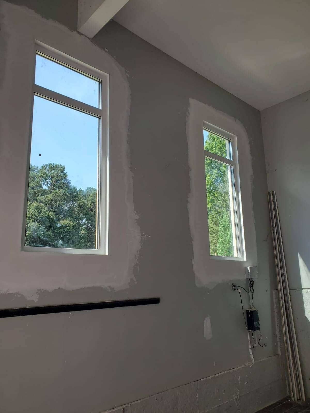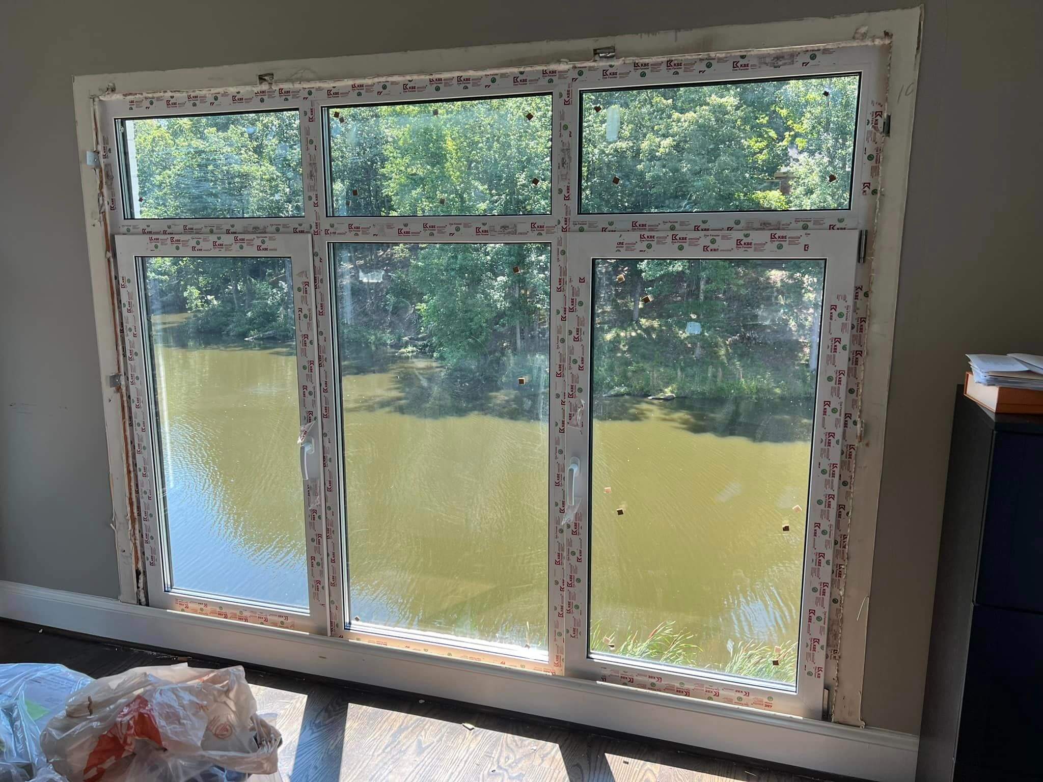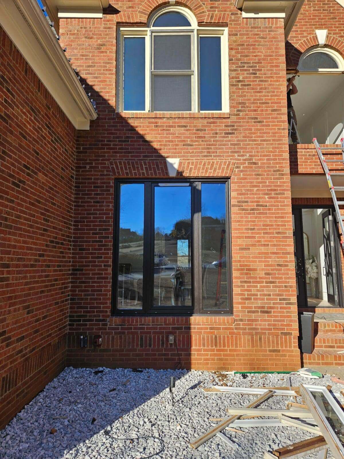 ASCO completed a full installation package for this new construction modern farmhouse, supplying and setting black-framed windows and multiple exterior door units. The scope included large picture windows, tall narrow openings, and patio/entry door installations, all aligned and sealed for a clean finish and dependable performance.