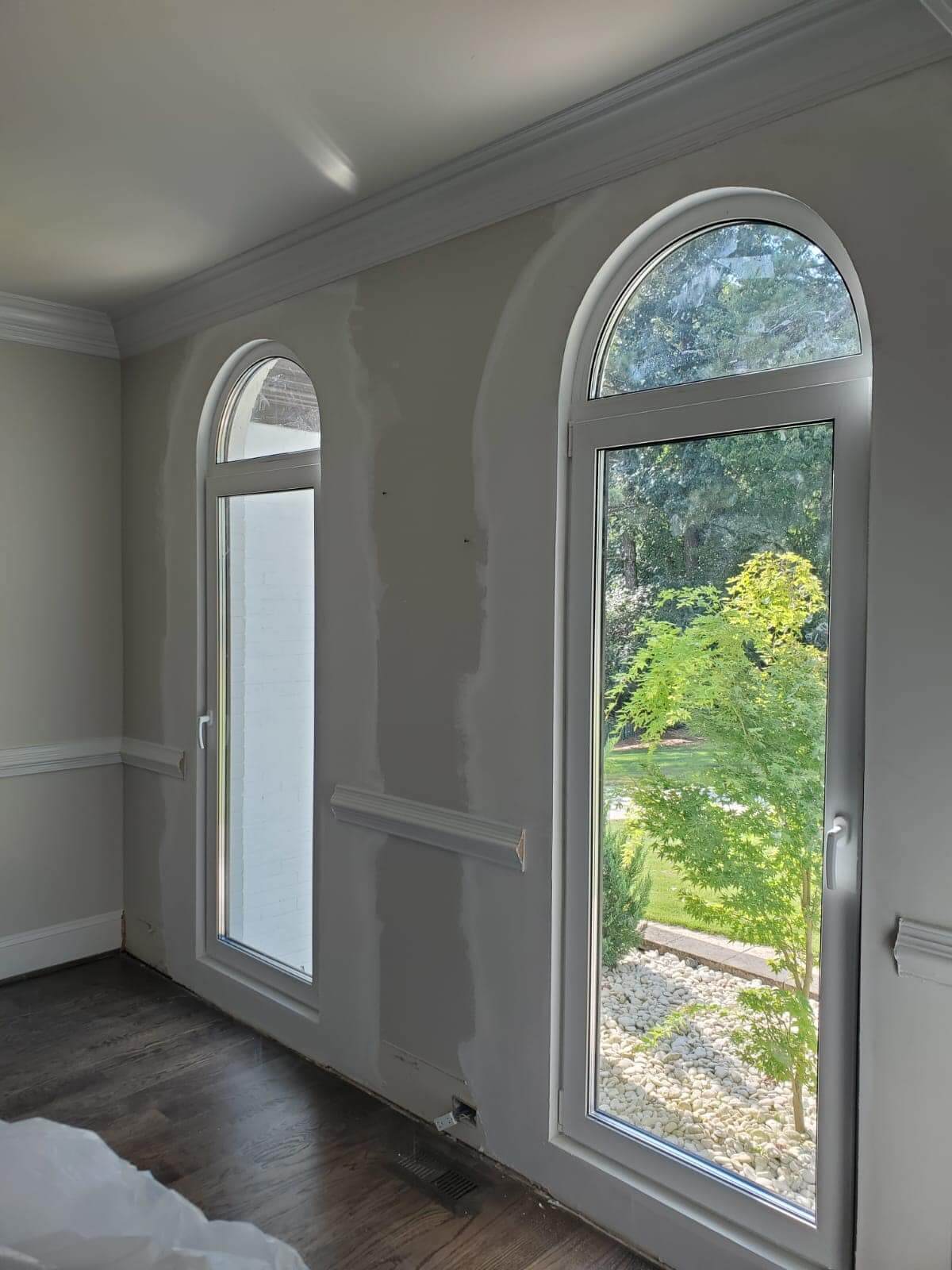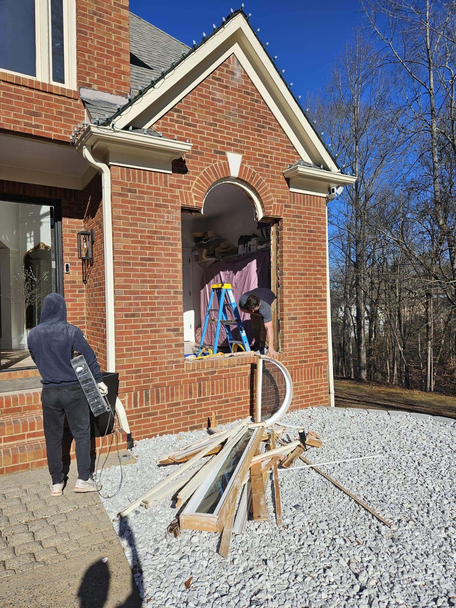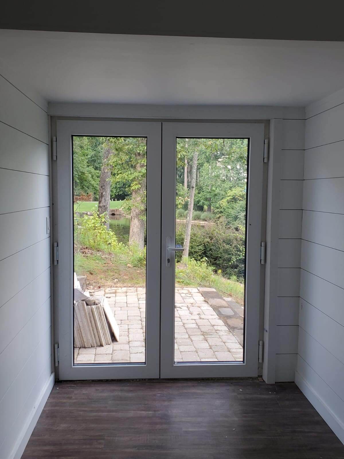 ASCO completed a full installation package for this new construction modern farmhouse, supplying and setting black-framed windows and multiple exterior door units. The scope included large picture windows, tall narrow openings, and patio/entry door installations, all aligned and sealed for a clean finish and dependable performance.